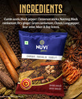 Cumin seeds, Black pepper, Cinnamon sticks, Nutmeg, Black cardamom, Dry ginger, Green cardamom, Cloves, Long pepper, Star anise, Mace & Bay leaves.